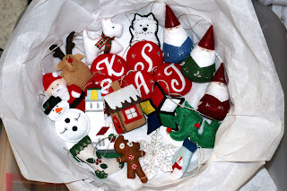 Kathy is new to felt ornaments and hasn't tackled the Carolyn DeAngelis patterns yet. She made these ornaments from other sources for Christmas. Beautiful! I particularly love the detail on the stocking.